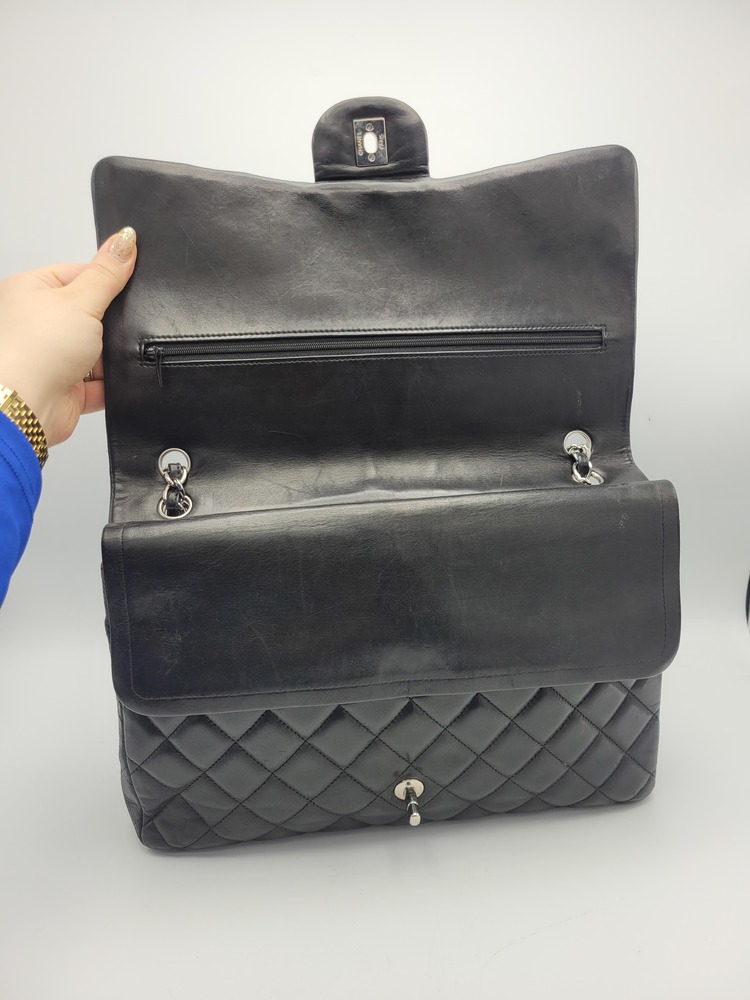 Vintage CHANEL Classic Double Flap Bag – Black Lambskin / Silver-Tone Hardware
