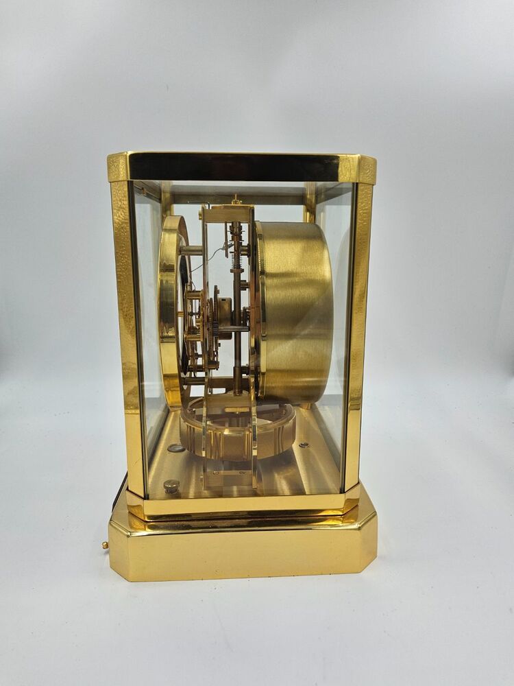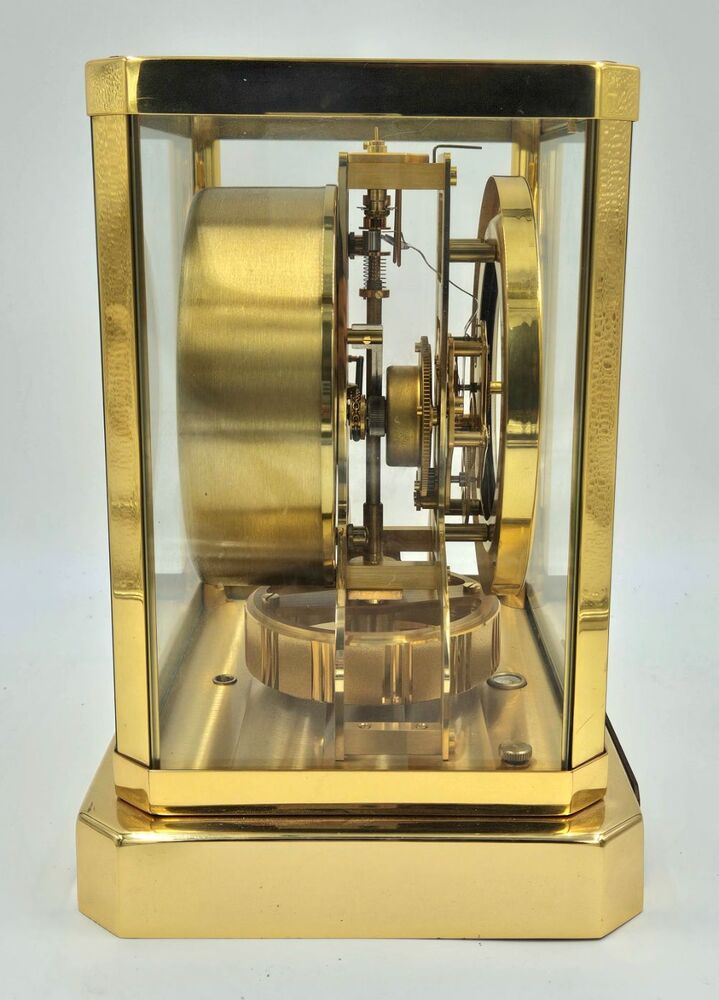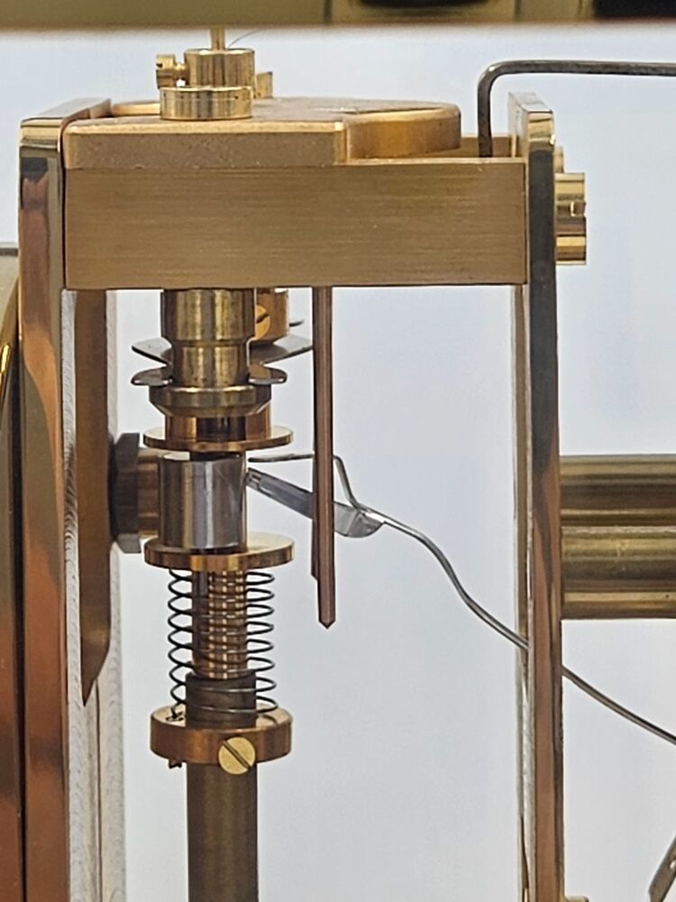 Transparent glass cabinet allows 360° view of the movement, bellows, and torsion pendulum
