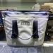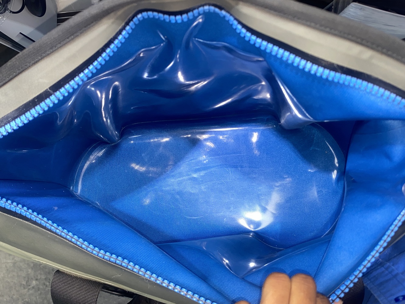 This cooler bag is in good condition. It has some discoloration on the outside and the bottom but the inside is clean.